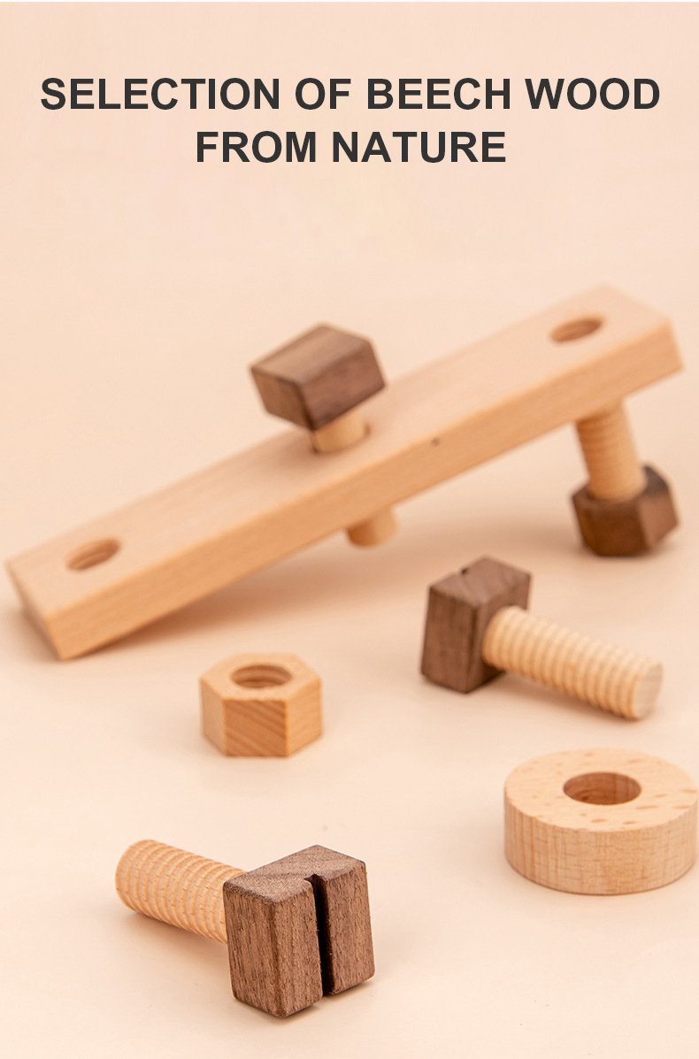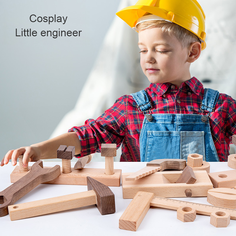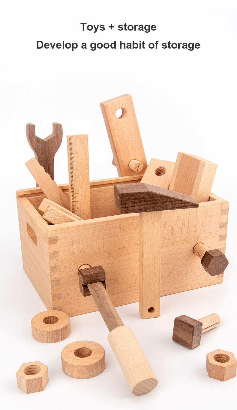 Una caja de herramientas de madera maciza diseñada para pequeños constructores. Fomenta la creatividad, la coordinación y el aprendizaje a través del juego y la imaginación.