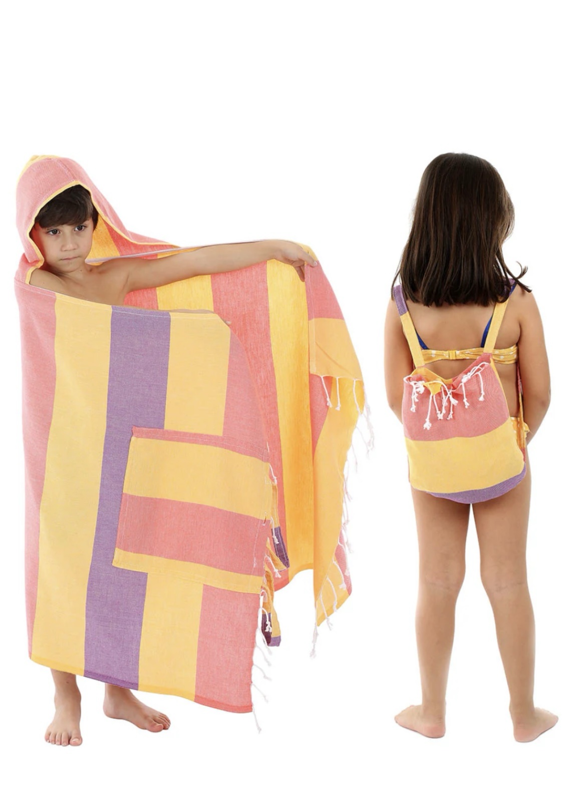 Toalla 100% algodón turco que se transforma en mochila. Suave, liviano y práctico, combina diseño, comodidad y estilo para disfrutar al máximo los días de verano.