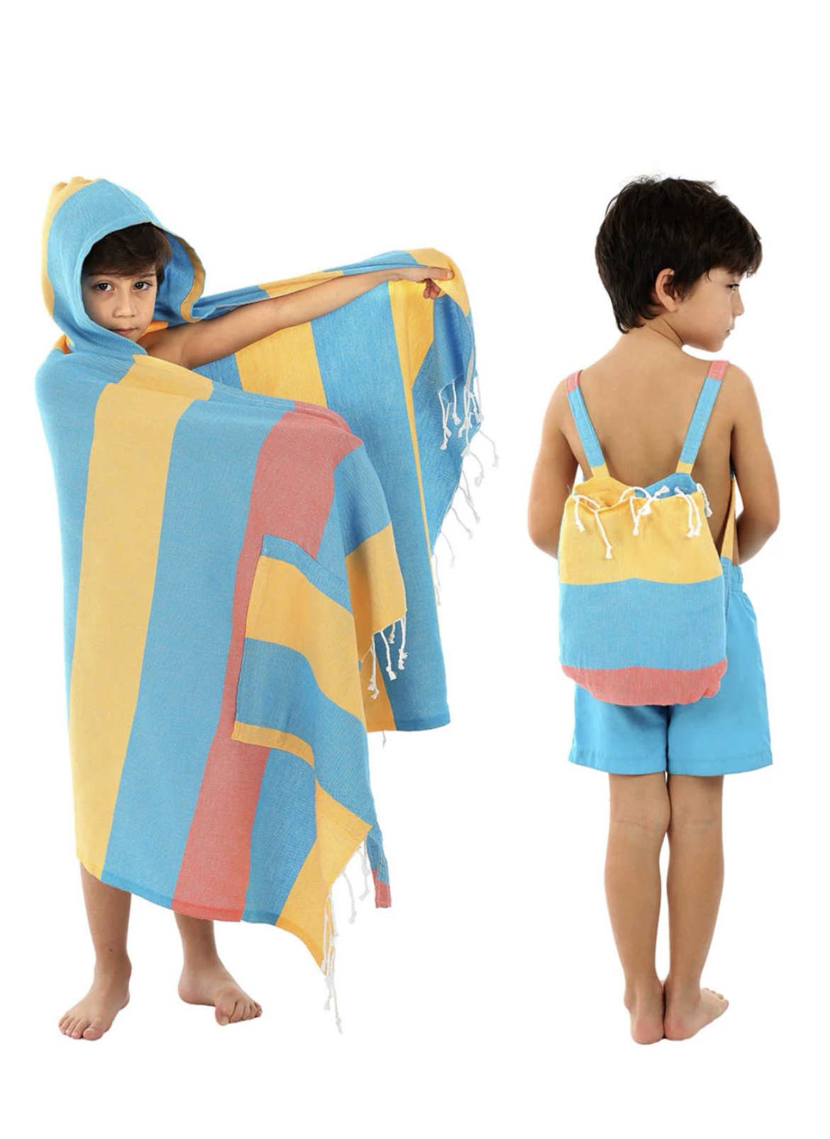 Toalla 100% algodón turco que se transforma en mochila. Suave, liviana y práctica, combina diseño, comodidad y estilo para disfrutar al máximo el verano.
