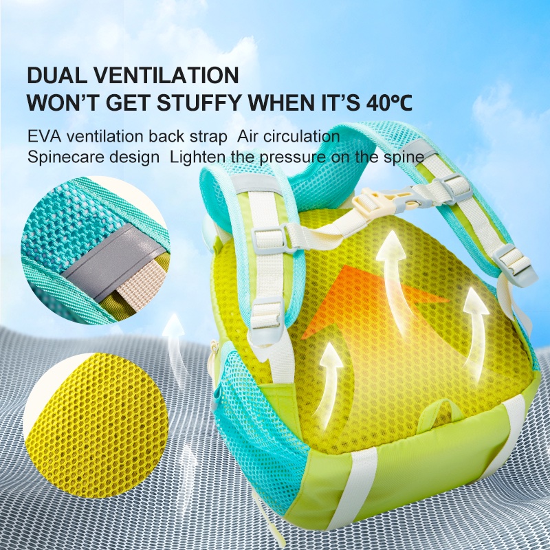 Mochila infantil impermeable, liviana y resistente. Su diseño colorido fomenta la autonomía, la responsabilidad y la alegría en cada aventura diaria.