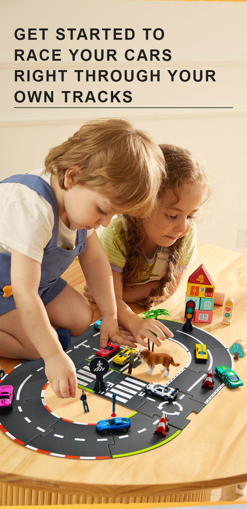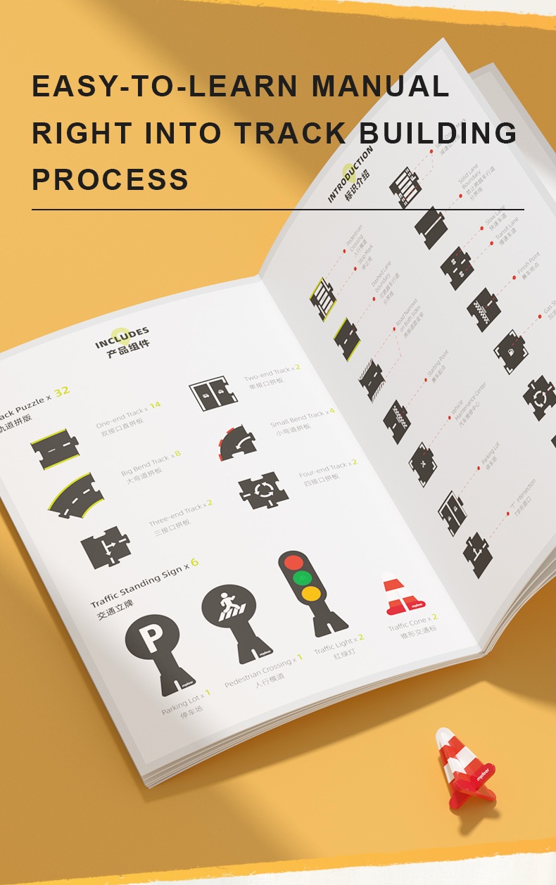 Con su formato de puzzle, los niños pueden armar y rearmar los caminos a su gusto, creando circuitos urbanos únicos y llenos de aventuras.