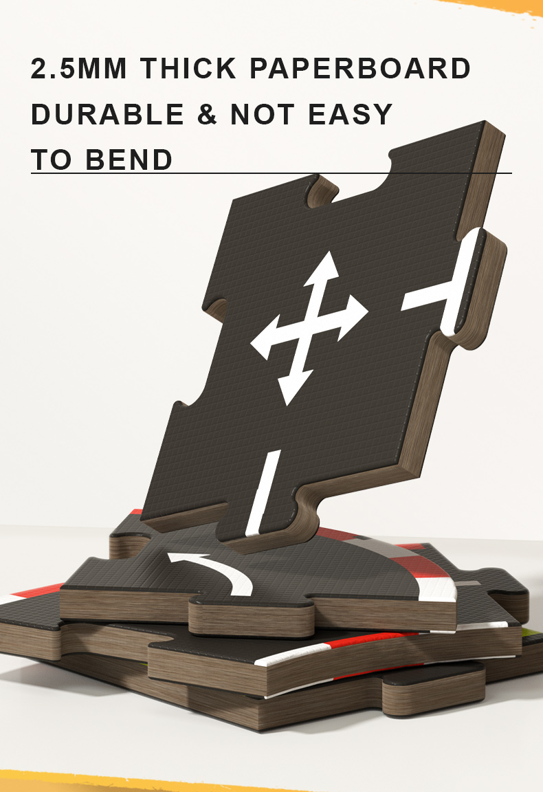 Formato puzzle, fácil de armar, guardar y transportar.