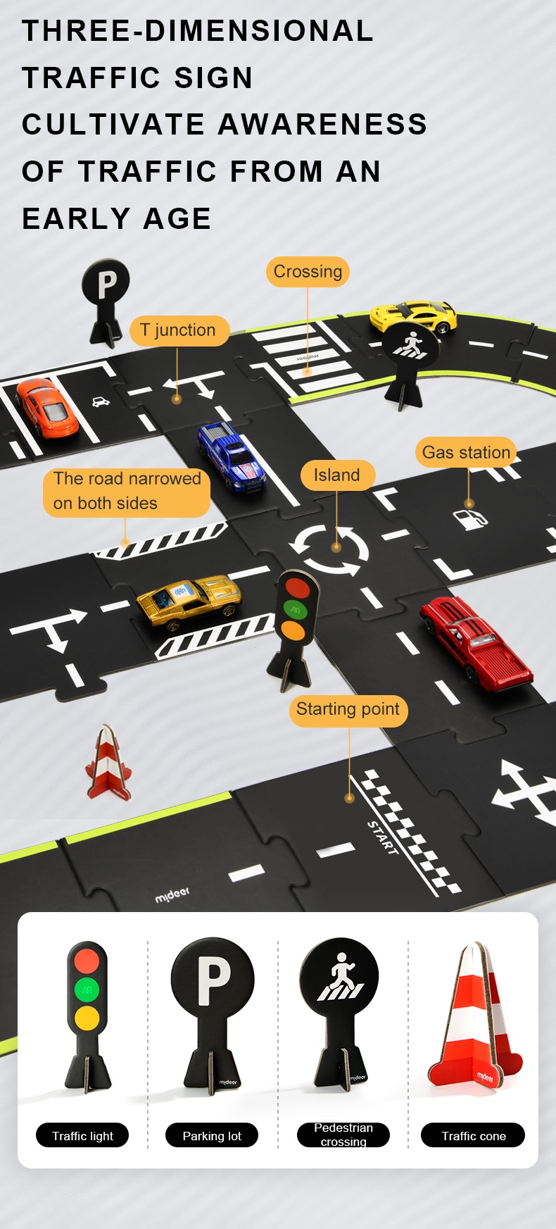 Perfecta para combinar con los autos Mideer, potencia el juego libre y la interacción, invitando a inventar nuevas rutas cada día.