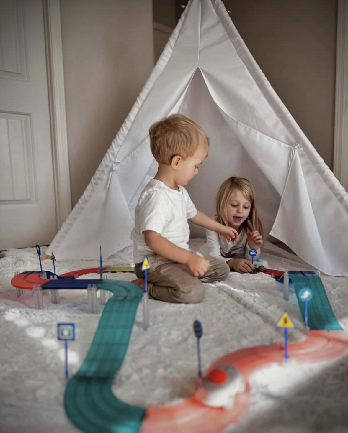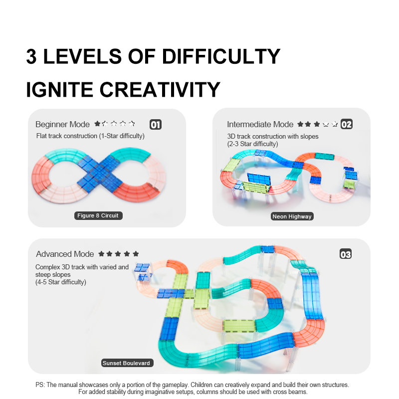 Una pista magnética con 2 autos a batería, con más de 100 piezas para crear circuitos únicos. Combina construcción, velocidad y aprendizaje, estimulando la creatividad, la coordinación y el trabajo en equipo.