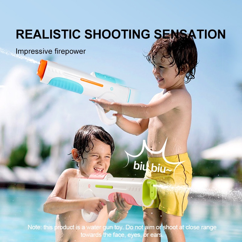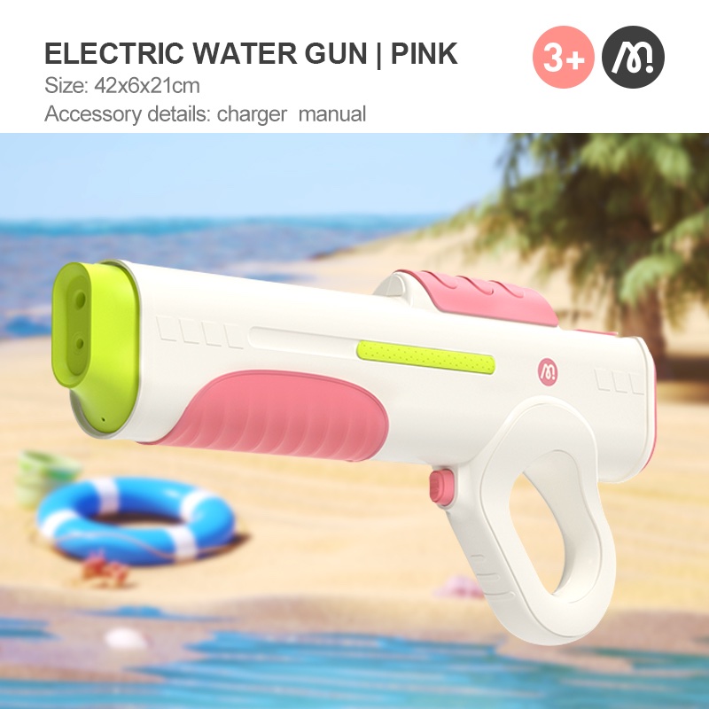 Pistola de agua eléctrica recargable, potente y segura. Ideal para días de playa o jardín, fomenta la actividad, la diversión y el juego al aire libre.