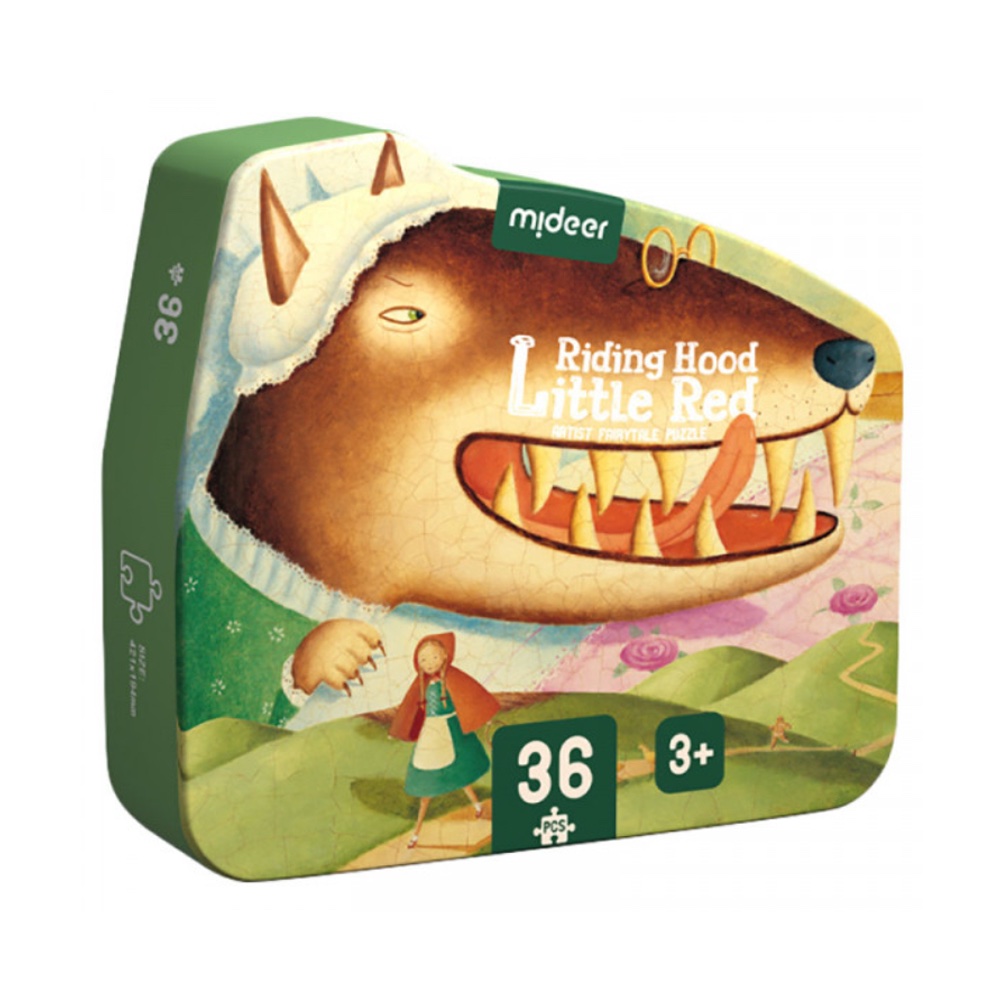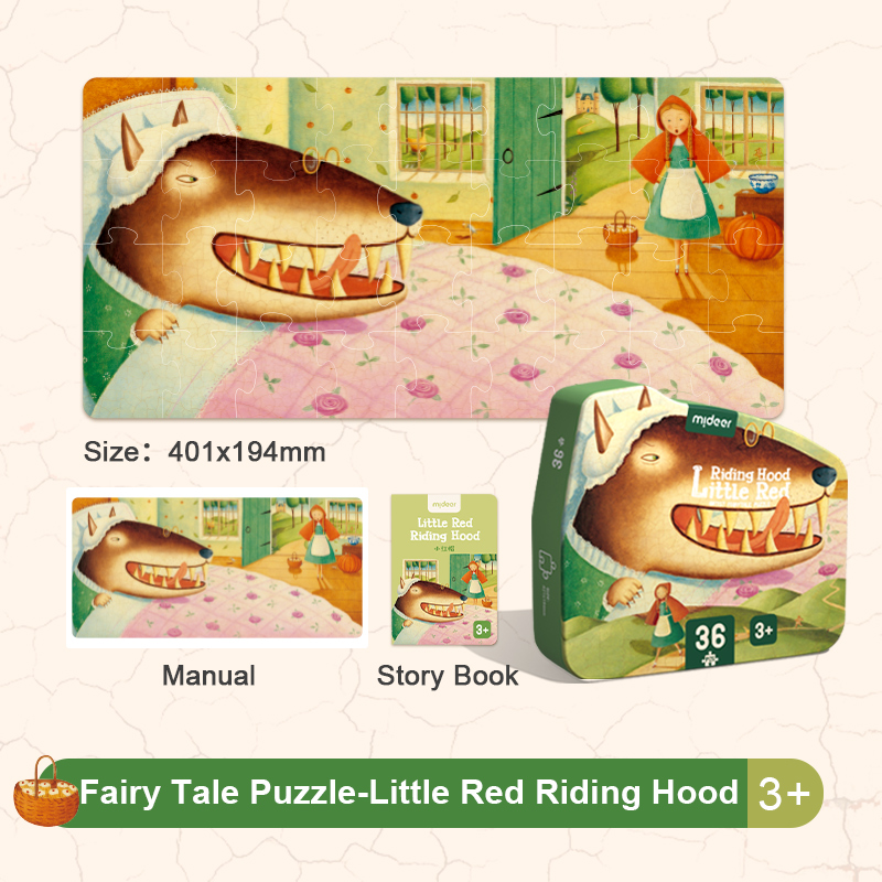 Un puzzle de 36 piezas grandes inspirado en Caperucita Roja. Estimula la concentración, la coordinación y la imaginación mientras los niños aprenden jugando con un cuento clásico.