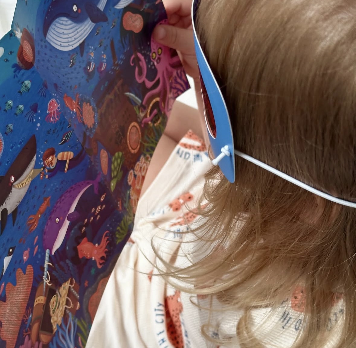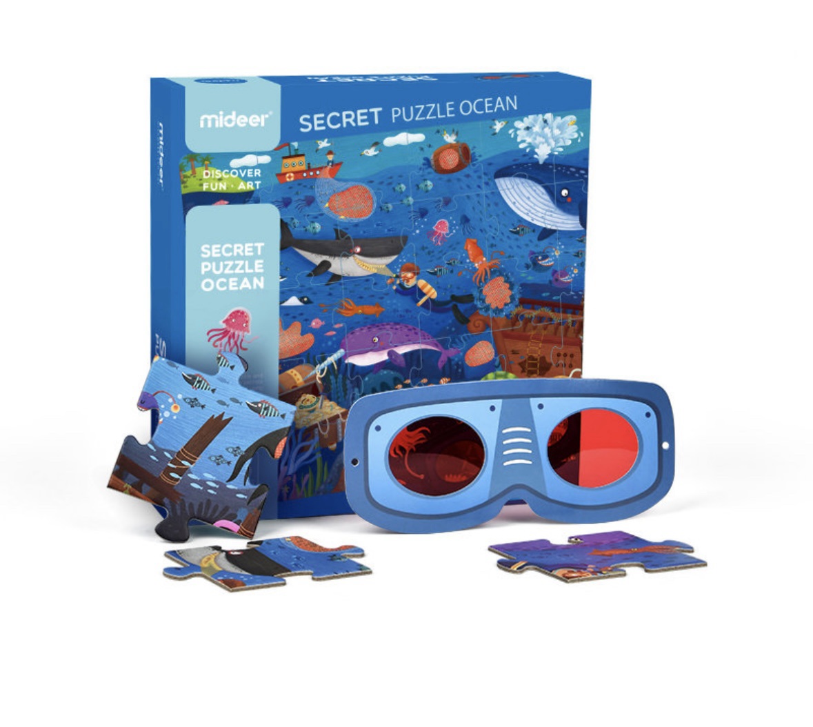 Un puzzle de 35 piezas que revela imágenes ocultas con lentes especiales. Estimula la curiosidad, la observación y la imaginación en una mágica aventura bajo el mar.