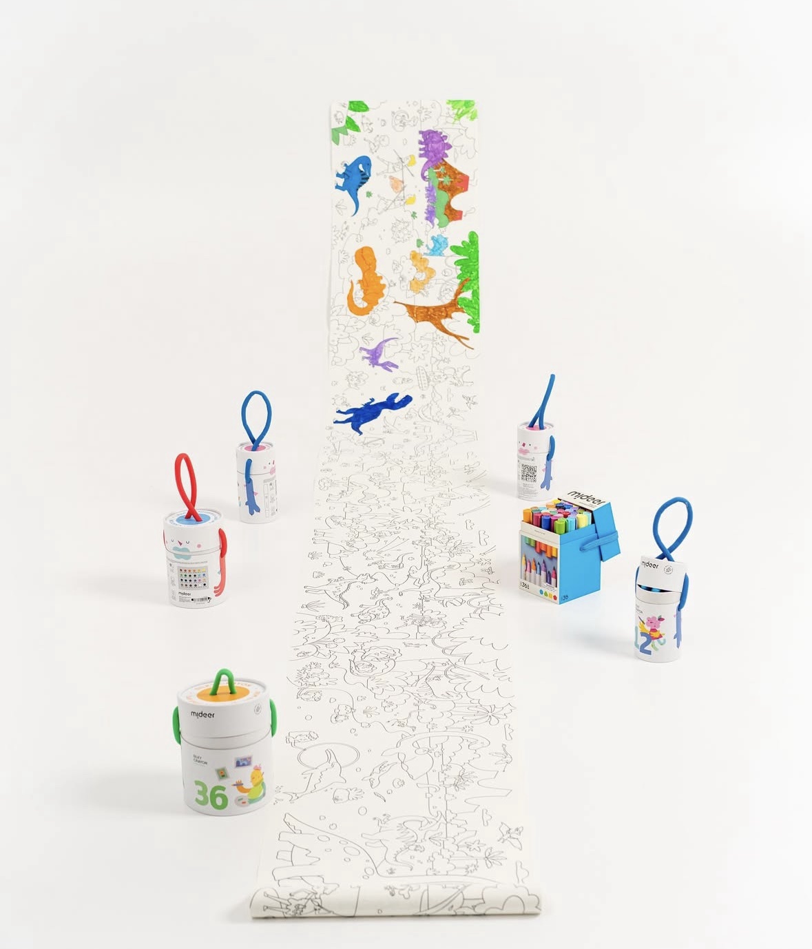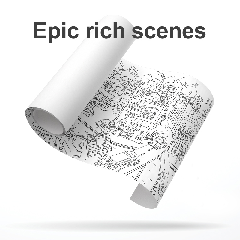 Rollo para colorear de 10 metros con dibujos llenos de detalles. Fomenta la creatividad, la concentración y la expresión artística en una actividad divertida y sin pantallas.