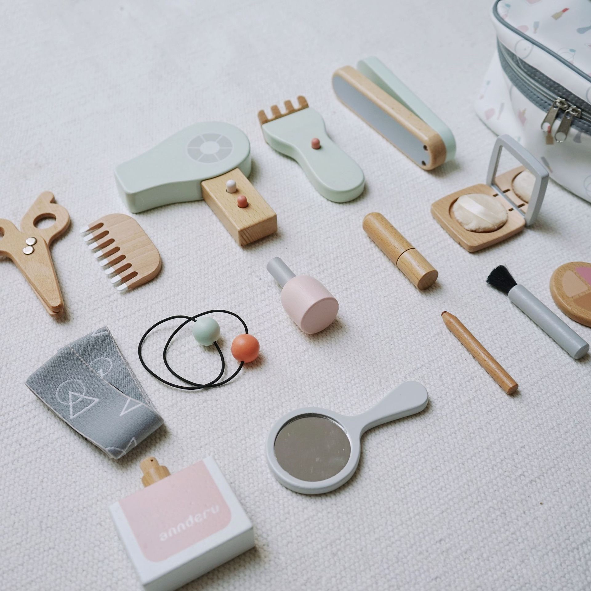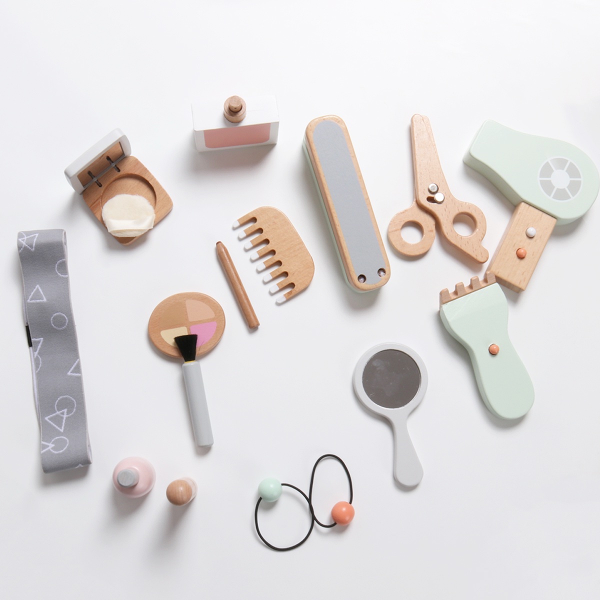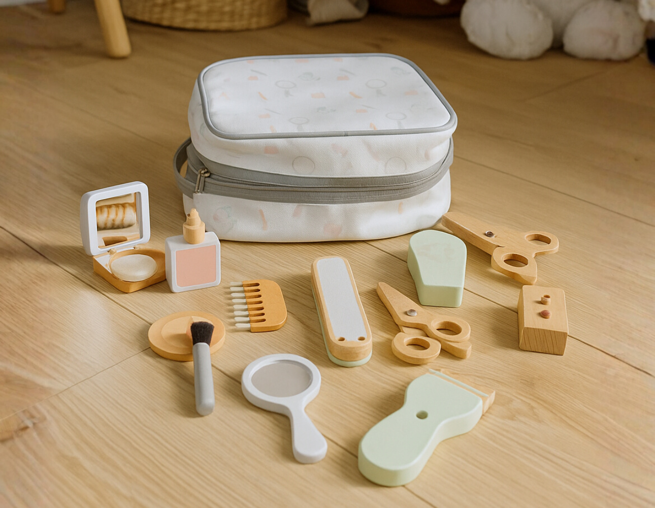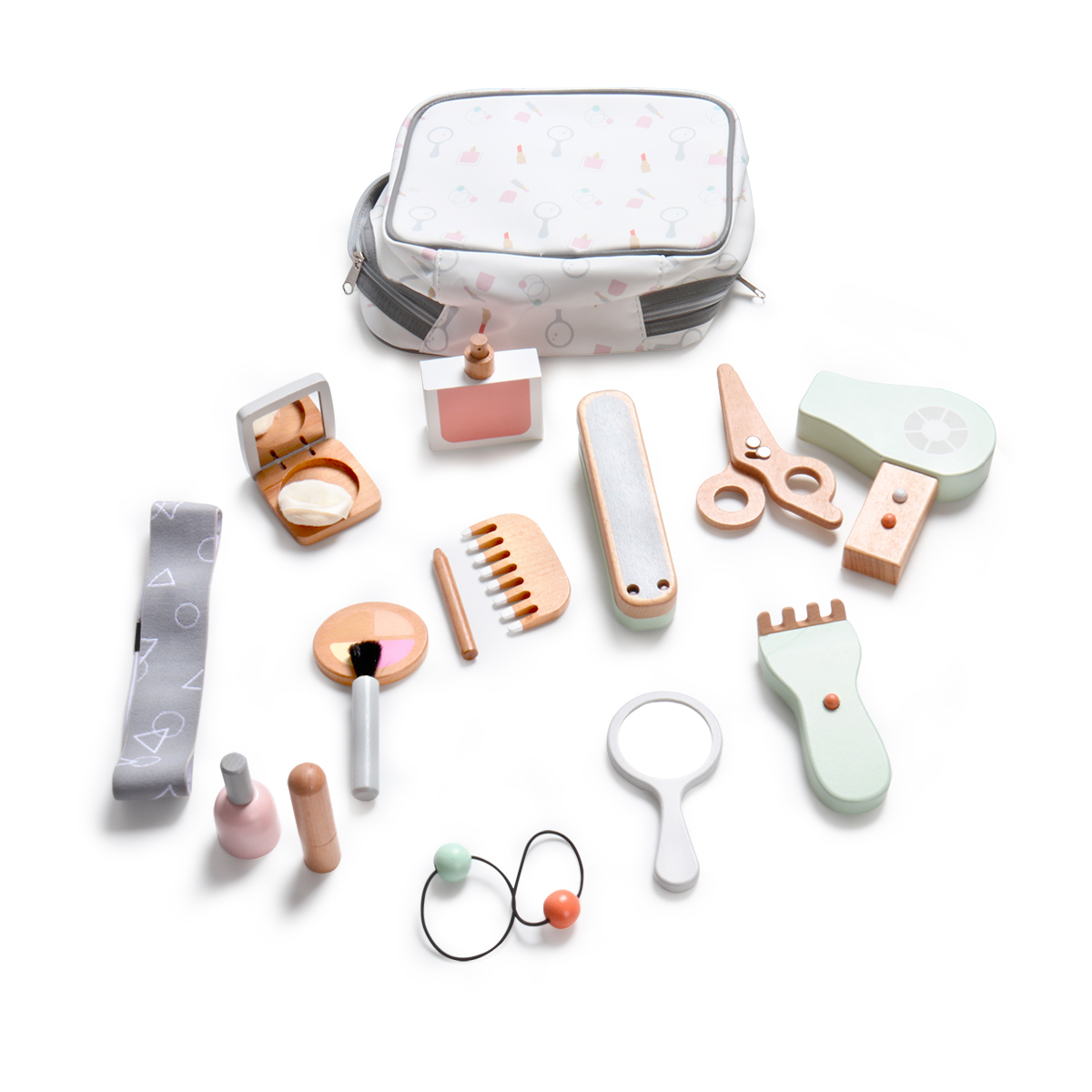 Un set de maquillaje de madera con accesorios premium, suaves y realistas. Invita a imaginar, imitar y crear momentos de juego llenos de ternura y creatividad.